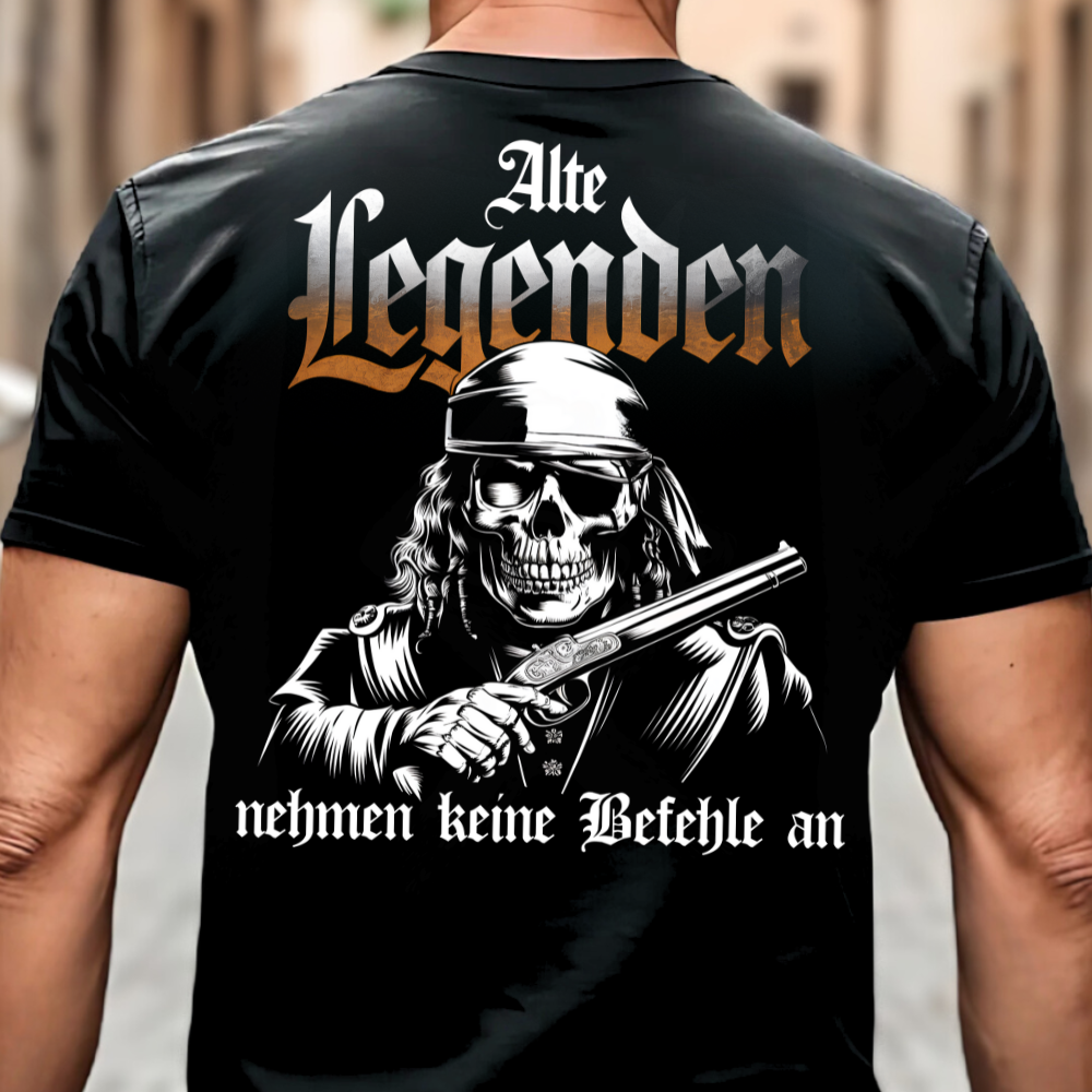 Alte Legenden nehmen keine Befehle an - Premium T-Shirt Rückendruck