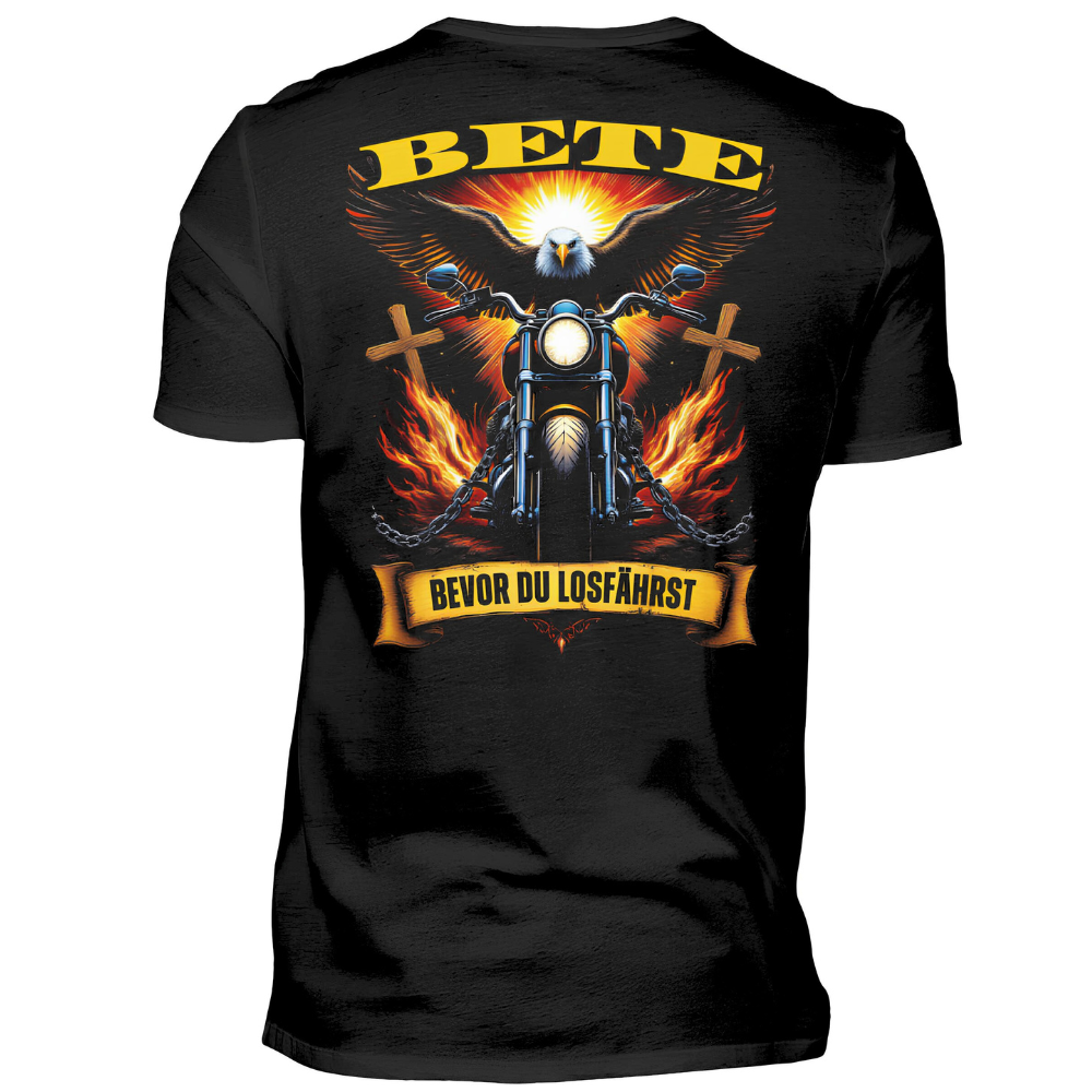 Bete, bevor du losfährst - Premium T-Shirt Rückendruck