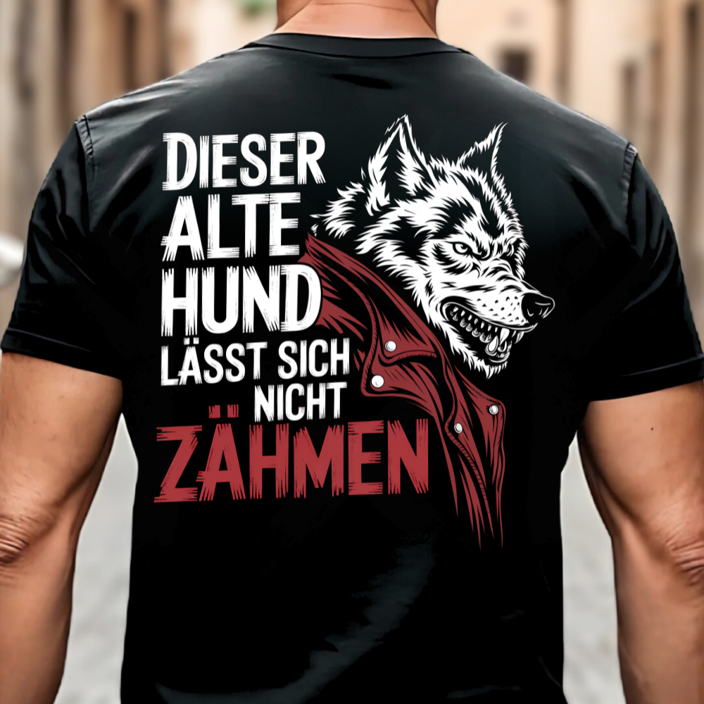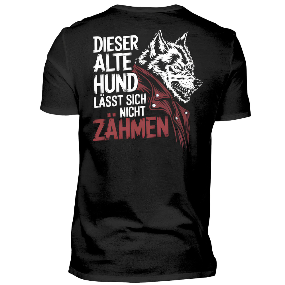 Dieser alte Hund lässt sich nicht zähmen - Premium T-Shirt Rückendruck