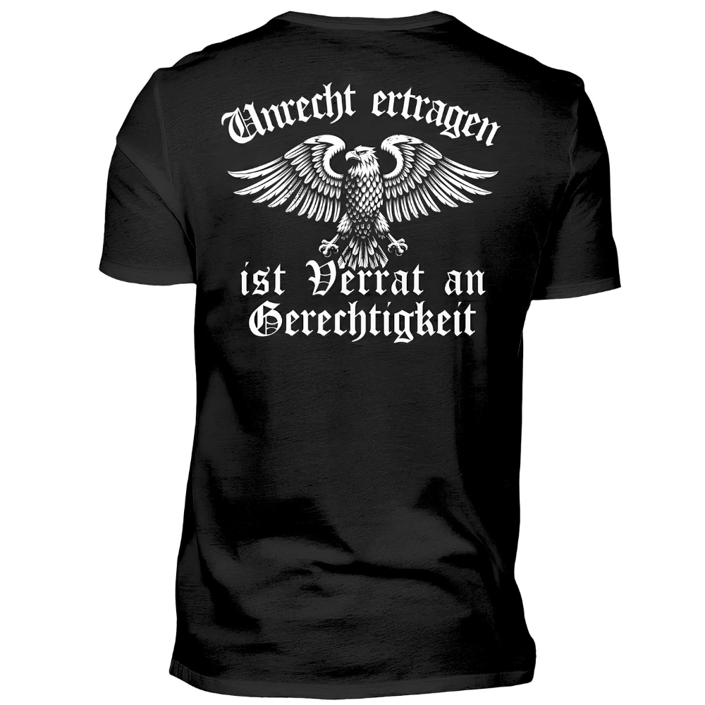 Unrecht ertragen ist Verrat an Gerechtigkeit - Premium T-Shirt Rückendruck