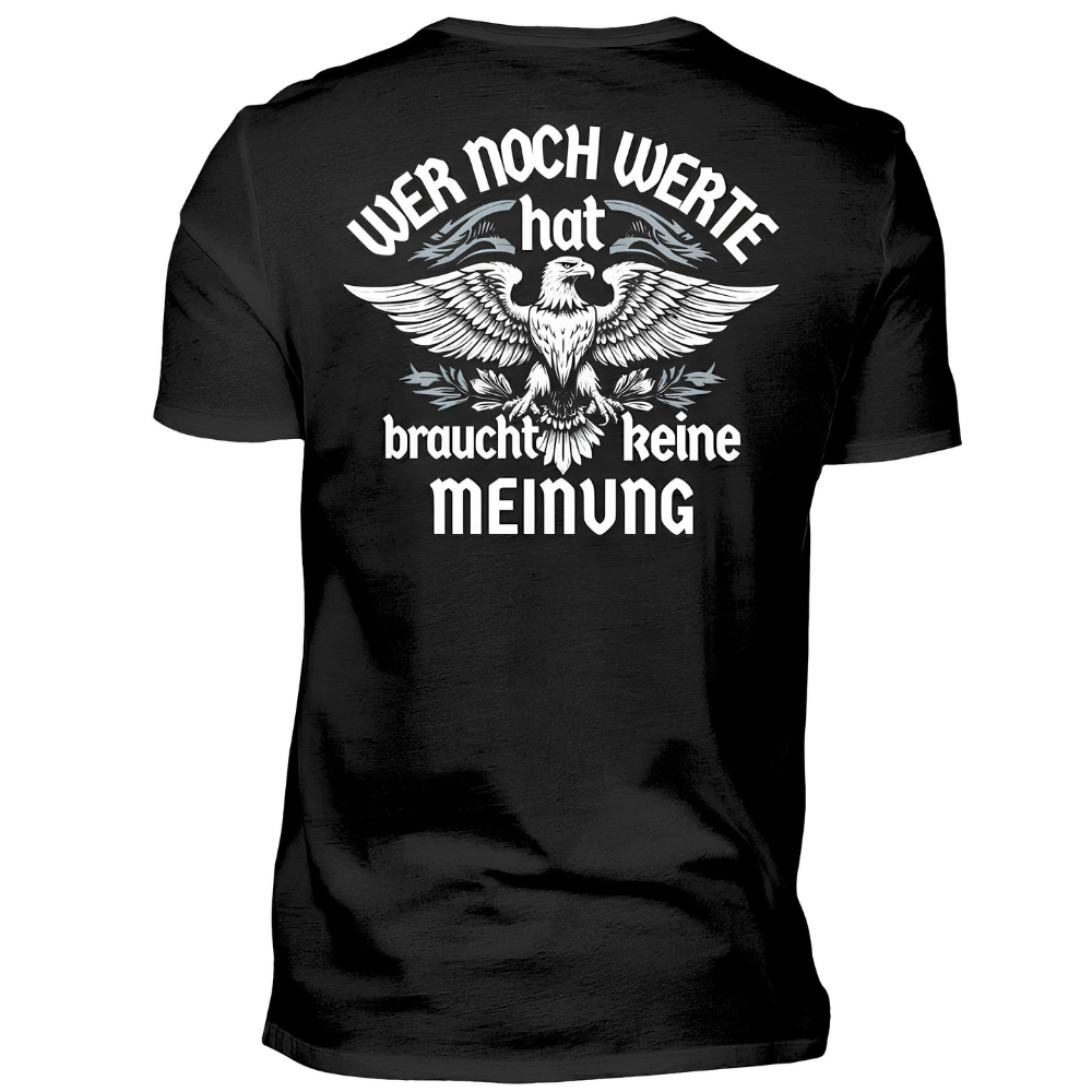 Wer noch Werte hat, braucht keine Meinung. - Premium T-Shirt Rückendruck